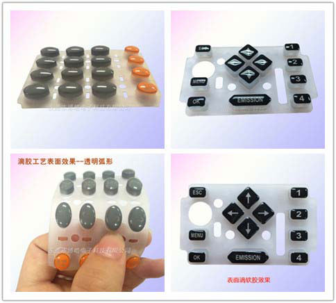 滴膠工藝可分為滴軟膠和滴硬膠,小編先給大家普及一個如何區(qū)分軟硬膠的方法,那就是用手指掐硅膠按鍵表面的膠,軟的就是滴軟膠,硬的就是滴硬膠。