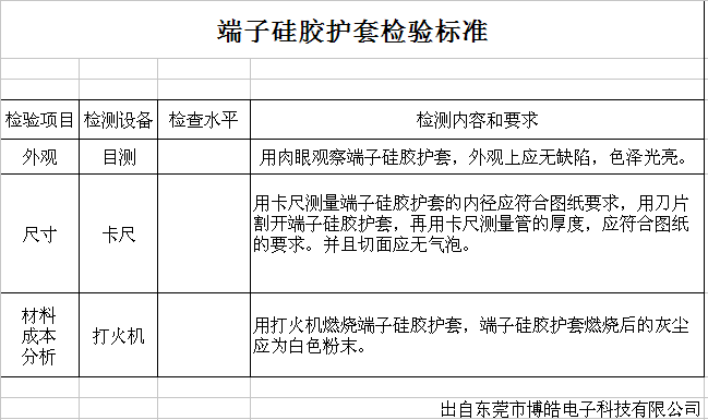 1、外觀:用肉眼觀察端子硅膠護套,外觀上應無缺陷,色澤光亮。
