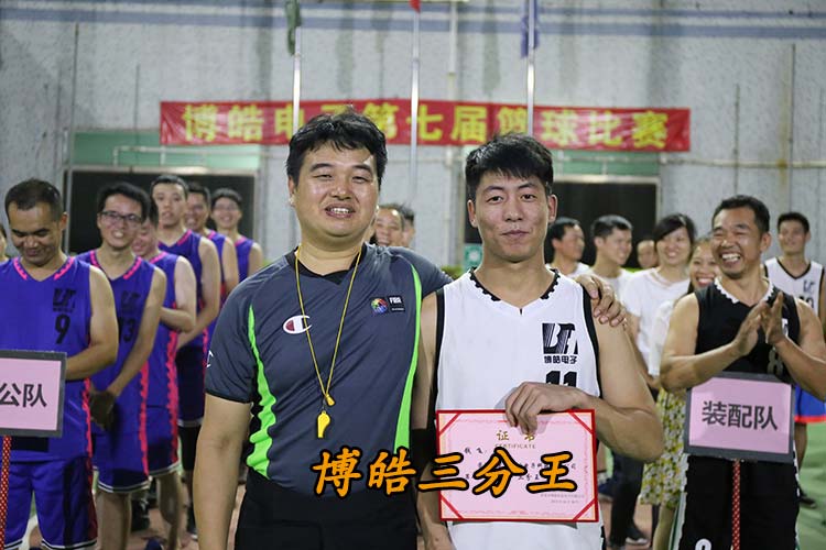 第二場(chǎng)則是我們的冠亞軍之爭(zhēng)。辦公隊(duì)、印刷隊(duì)都是歷年強(qiáng)隊(duì)。俗話說的好“一山不容二虎”,兩隊(duì)的較量肯定激烈萬分。前面三節(jié)的比分你追我趕都相差無幾,第四節(jié)印刷隊(duì)出了差錯(cuò),整個(gè)隊(duì)伍的氣勢(shì)一落千丈,比分一度落后。裁判的哨聲響起比賽結(jié)束最后辦公隊(duì)以20分的優(yōu)勢(shì)拿下冠軍,辦公室隊(duì)成為2019年博皓電子第七屆籃球比賽的冠軍。