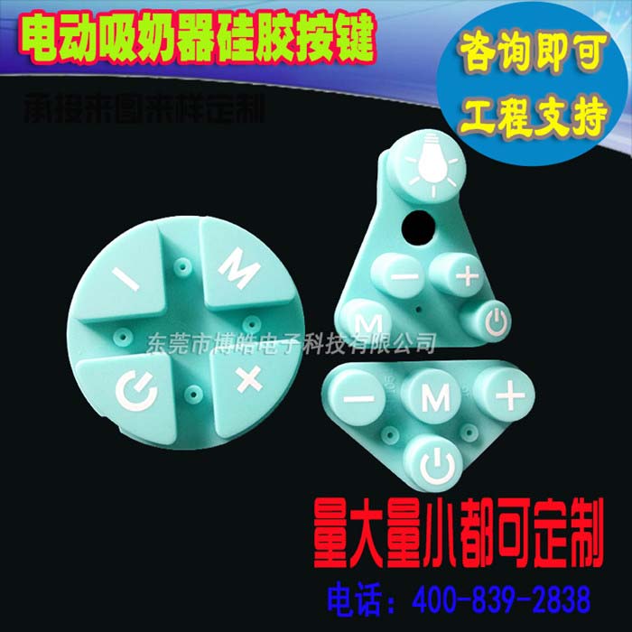 早在幾年前我們博皓電子就有在做吸奶器硅膠按鍵,近又不斷的接到這款按鍵及類似產品的訂單,今天要給大家介紹一下這款產品的具體定做過程,讓大家明白哪里才是定做吸奶器硅膠按鍵的好去處。