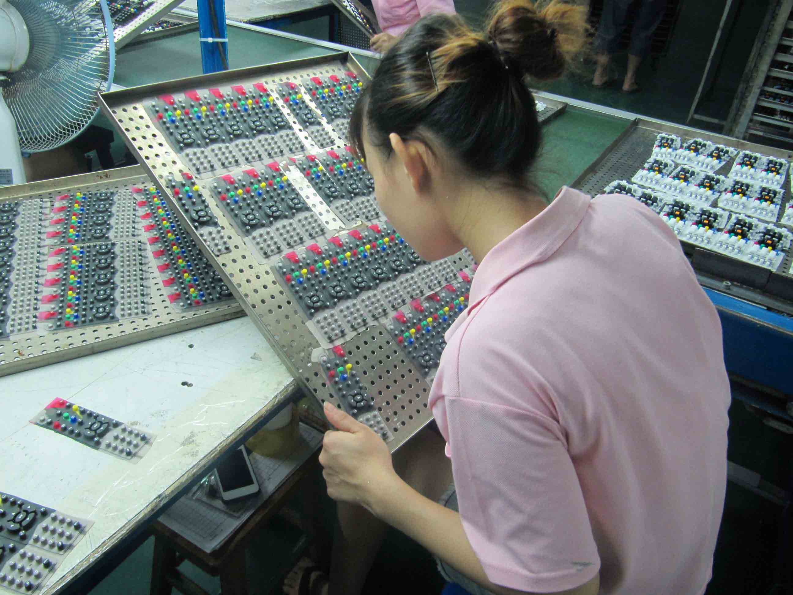 從絲印工藝要求講:一般現(xiàn)在的硅膠按鍵都是需要絲印四五種的顏色,每一種顏色都是需要經(jīng)過一次檢查和烘烤的。博皓電子在管控絲印品質過程中增加一個FQC檢查崗位,在絲印完成后烘烤前會檢查員會把產(chǎn)生的不良挑選出來,并且擦拭干凈重新絲印。一般的小型工廠是不會增加這種檢查崗位的,這就是博皓電子能生產(chǎn)出品質過關而且具備優(yōu)勢的性價比的硅膠制品的原因。