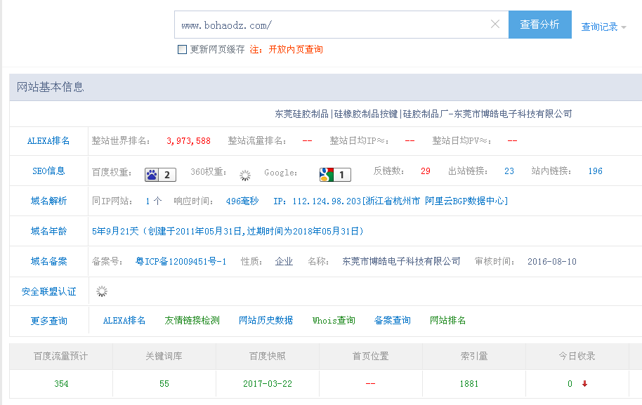 下面是小編今天博皓電子網站(www.zxuewang.com)的站長數據。