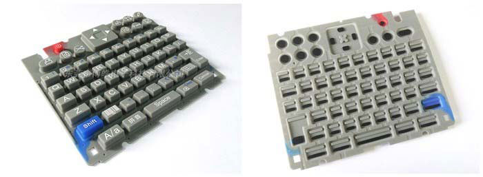 這款按鍵采用的工藝其實非常簡單,主要由成型+兩道絲印+移印導電油墨+質檢這幾道工序組成。它的特別之處在于它的按鍵設計,如果你有仔細看上圖,應該可以注意到它的鍵盤key都設計成斜狀,與之對應的還有它的背面導電油墨只點key鍵相對較高的那一側。為什么要設計成這個樣子呢,筆者一開始也是百思不得其解,后面筆者決定以用戶的角度來探尋其中的奧秘,親自操作這款打印機硅膠按鍵,結果發現這種設計非常精妙。其一:如果設計成平的,由于它每個鍵位都很小且間隔很近,在按的過程中很容易帶到其它鍵位造成操作失誤。其二:這種設計用于非常好的觸感,有一種按下鋼琴鍵的感覺。