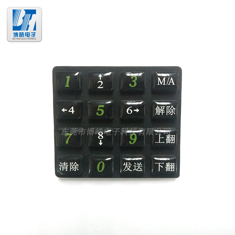 - 博皓電子擁有一支10-15年硅膠行業專業工程團隊,擁有三個實體工廠專業生產:滴膠按鍵,遙控器滴膠按鍵,等所有電子產品滴膠按鍵,也可根據客戶需求來定制硅膠滴膠按鍵,客戶只需提供圖檔或實物,博皓電子將從專業的角度協助客戶進行前期的設計開發等研究工作。