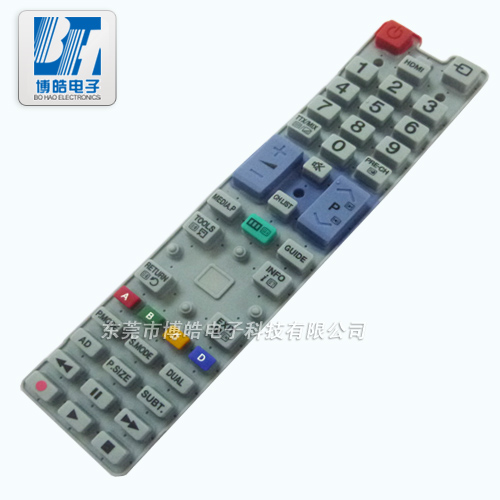 - 產品簡介:這是一款用于海爾液晶電視的硅膠遙控器按鍵,設計復雜,制作工序多,使用的硅膠原材料顏色較為豐富,主要用比較鮮艷的顏色來制作特殊按鍵,方便你在使用中更容易得心應手,另外這款按鍵還有一個特殊的地方,就是按鍵下加有黑粒導電,可以起到導電效果。