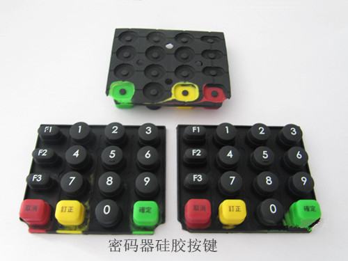 - 產品簡介:此款產品是純硅膠原料生產的一款密碼器按鍵,顏色豐富、按鍵還采用了導電黑粒具有很好的導電效果,消費者在使用過程中可以感受到硅膠的柔軟性和絲滑性。