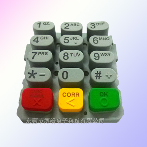 - 本款硅膠按鍵是一款出租車上的銀聯(lián)POS機(jī)|刷卡機(jī)上專用硅膠按鍵,采用絲印+噴涂工藝。博皓承接來圖設(shè)計(jì)定制生產(chǎn),為客戶提供省心硅膠按鍵定制服務(wù)!