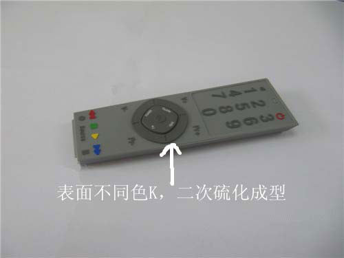 這款產(chǎn)品的生產(chǎn)難點(diǎn)在于表面有一種不同顏色導(dǎo)航鍵,這個是通過另外一套色K模具進(jìn)行二次硫化成型制成。